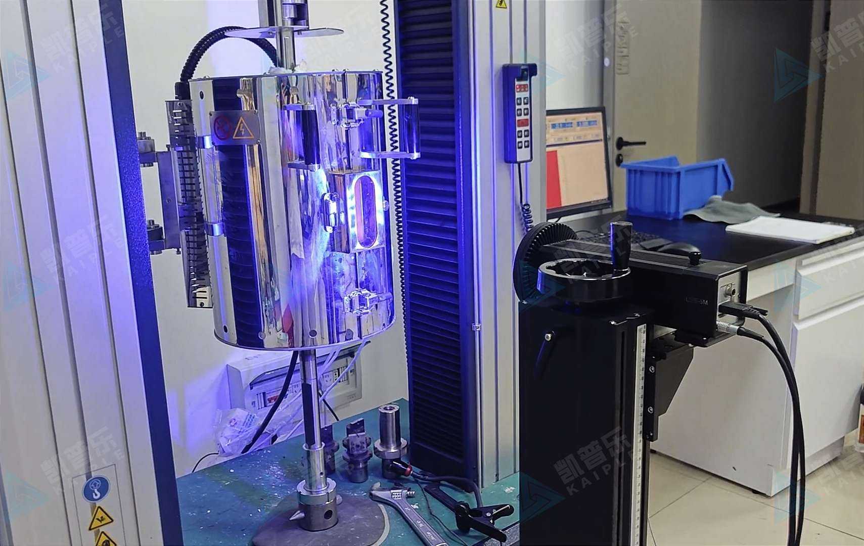 高温拉伸采用视频引伸计,可提供应力应变曲线。可实现300~1100℃稳定控温(±5℃)